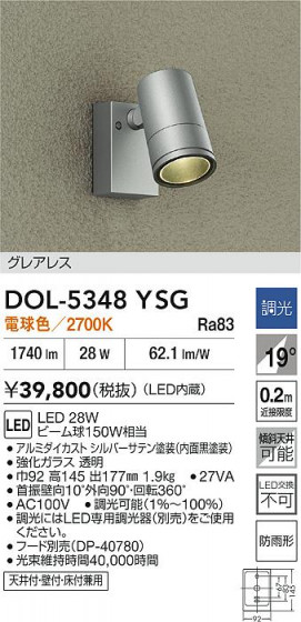 DAIKO 大光電機 アウトドアスポット DOL-5348YSG