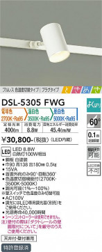 DAIKO 大光電機 色温度切替スポットライト DSL-5305FWG
