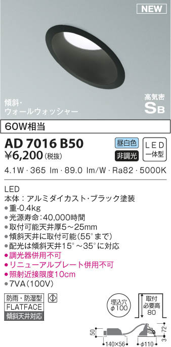KOIZUMI コイズミ照明 高気密ダウンライト AD7016B50