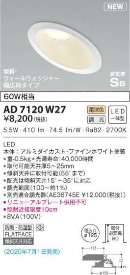 KOIZUMI コイズミ照明 高気密ダウンライト AD7120W27