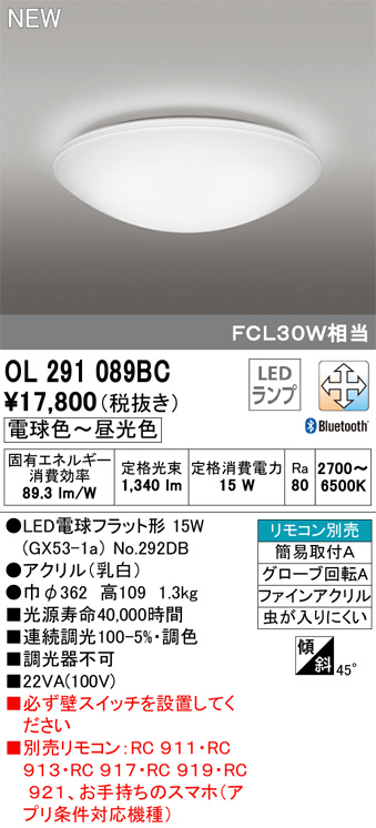 ODELIC オーデリック 小型シーリングライト OL291089BC