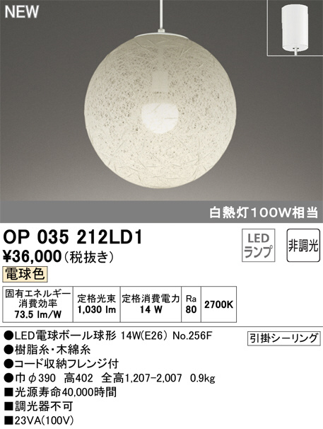 ODELIC オーデリック ペンダントライト OP035212LD1