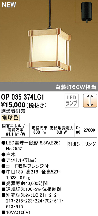 ODELIC オーデリック ペンダントライト OP035374LC1