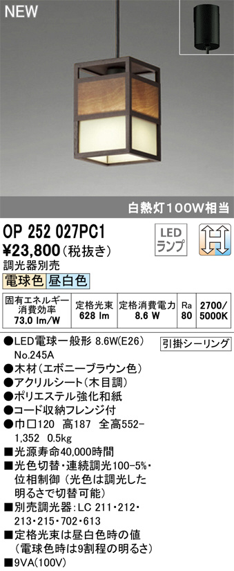 ODELIC オーデリック ペンダントライト OP252027PC1
