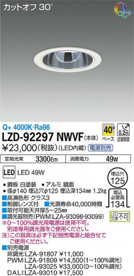 DAIKO 大光電機 ダウンライト LZD-92297NWVF