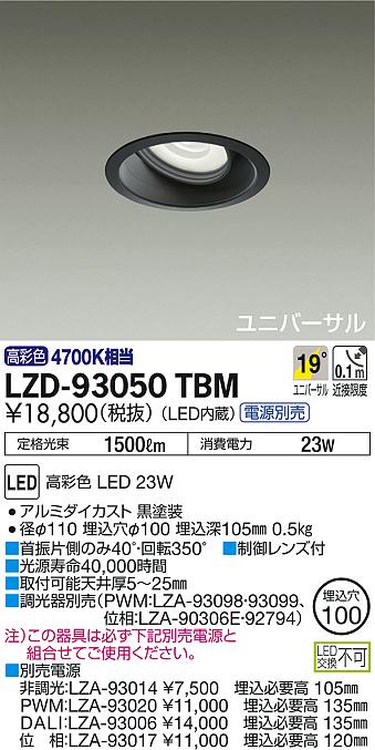 DAIKO 大光電機 ユニバーサルダウンライト LZD-93050TBM