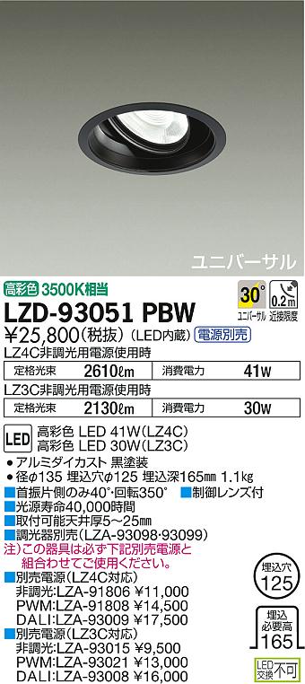 DAIKO 大光電機 ユニバーサルダウンライト LZD-93051PBW
