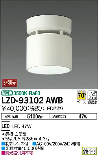 DAIKO 大光電機 シーリングダウンライト LZD-93102AWB