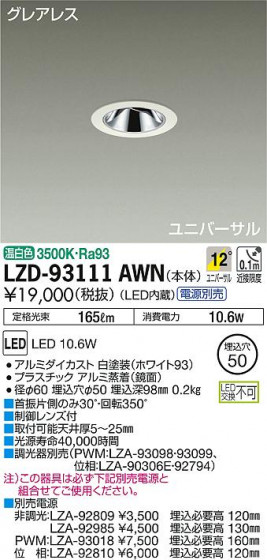 DAIKO 大光電機 ユニバーサルダウンライト LZD-93111AWN