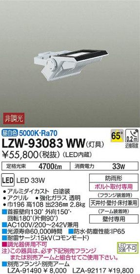 DAIKO 大光電機 アウトドアスポットライト LZW-93083WW