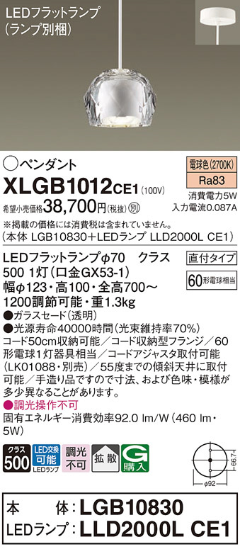 Panasonic ペンダント XLGB1012CE1