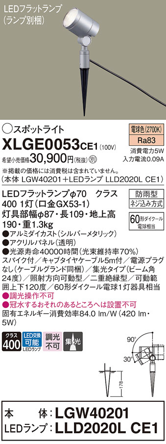 Panasonic エクステリアスポットライト XLGE0053CE1