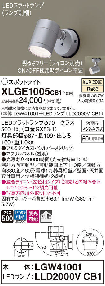 Panasonic エクステリアスポットライト XLGE1005CB1
