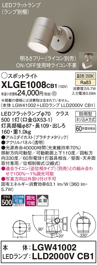 Panasonic エクステリアスポットライト XLGE1008CB1