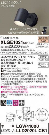 Panasonic エクステリアスポットライト XLGE1021CB1