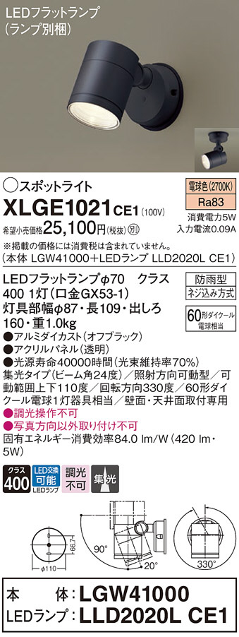Panasonic エクステリアスポットライト XLGE1021CE1