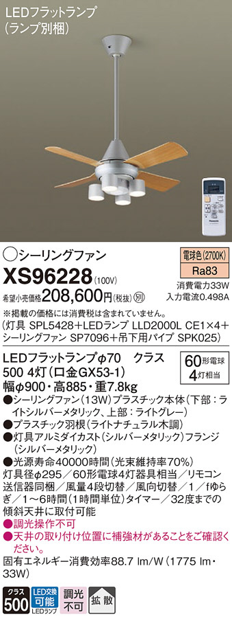 ●本体材質・仕上・色:シーリングファン(13W)プラスチック本体(下部:ライトシルバーメタリック、上部:ライトグレー)・プラスチック羽根(ライトナチュラル木調)・灯具アルミダイカスト(シルバーメタリック)フランジ(シルバーメタリック)