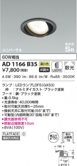 KOIZUMI コイズミ照明 高気密SBユニバーサルダウンライト AD1166B35