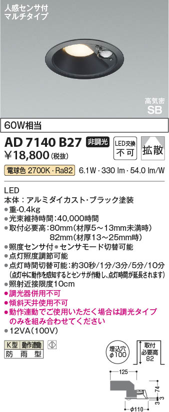 Koizumi コイズミ照明 LED高気密SBダウンライト AD7140B27
