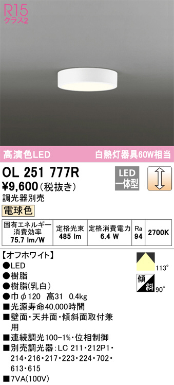 ODELIC オーデリック 小型シーリングライト OL251777R