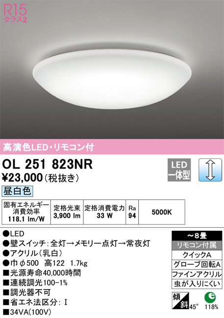 ODELIC オーデリック シーリングライト OL251823NR | 商品情報 | LED照明器具・照明機器の激安通信販売・格安通販・業務用販売・見積もり販売 照明倉庫 -LIGHTING DEPOT-