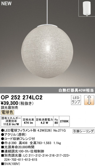ODELIC オーデリック ペンダントライト OP252274LC2