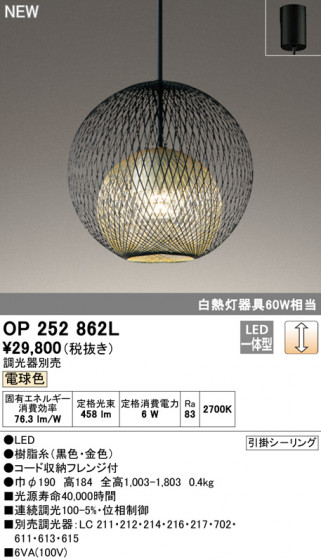 ODELIC オーデリック ペンダントライト OP252862L