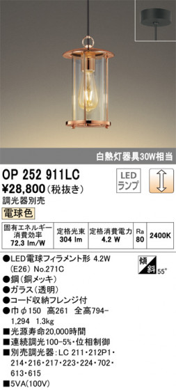 ODELIC ¥ª¡¼¥Ç¥ê¥Ã¥¯ ¥Ú¥ó¥À¥ó¥È¥é¥¤¥È OP252911LC