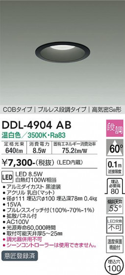 DAIKO 大光電機 ダウンライト DDL-4904AB