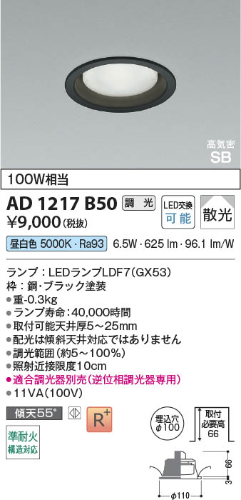 Koizumi コイズミ照明 LED高気密SBダウンライト AD1217B50