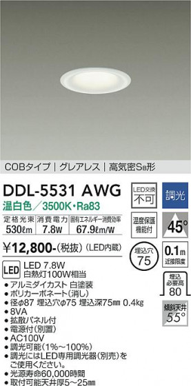 DAIKO 大光電機 ダウンライト DDL-5531AWG
