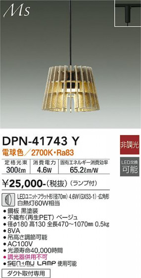 DAIKO 大光電機 小型ペンダント DPN-41743Y