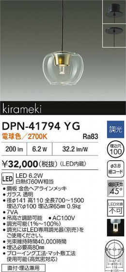 DAIKO 大光電機 小型ペンダント DPN-41794YG
