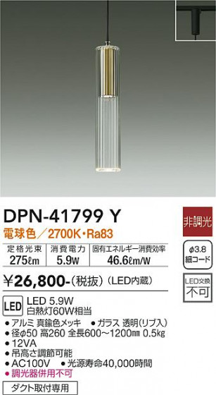 DAIKO 大光電機 小型ペンダント DPN-41799Y
