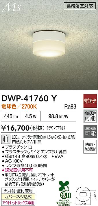 DAIKO 大光電機 浴室灯 DWP-41760Y