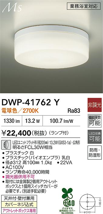 DAIKO 大光電機 浴室灯 DWP-41762Y