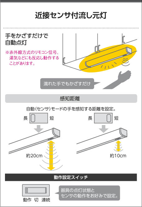 ●センサ鉛直上に湯気やリモコン信号などがあたったり、反射率が高いものがあると誤作動する場合があります