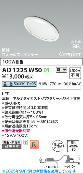 Koizumi コイズミ照明 LED高気密SBダウンライト AD1225W50