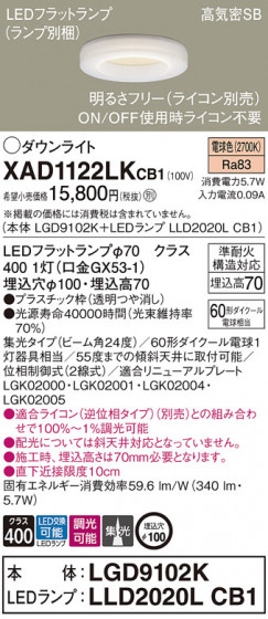 Panasonic ダウンライト XAD1122LKCB1