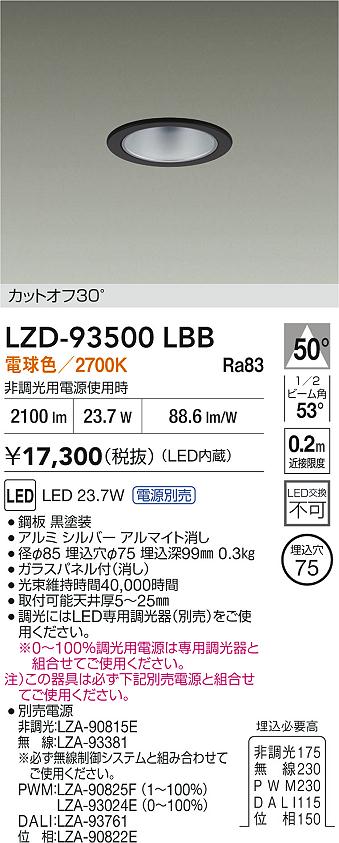 DAIKO 大光電機 LED ダウンライト LZD-93500LBB