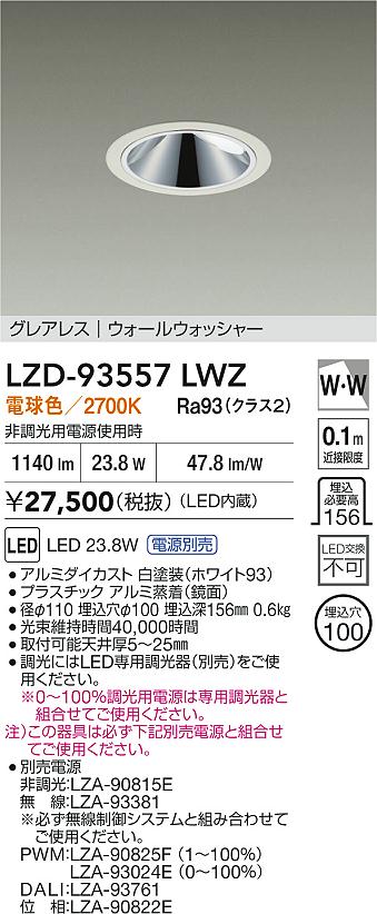 DAIKO 大光電機 LED ウォールウォッシャーダウンライト LZD-93557LWZ