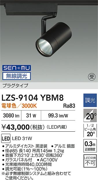 DAIKO 大光電機 LED スポットライト LZS-9104YBM8