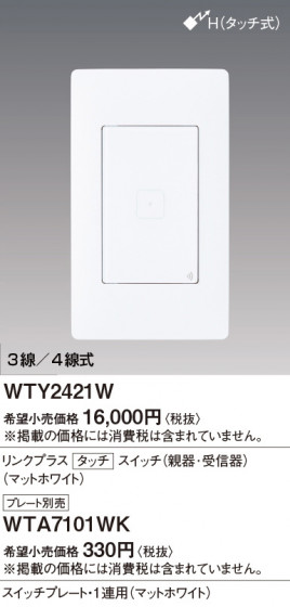Panasonic アドバンスSリンクプラスタッチSW親器・受信器・マットホワイト WTY2421W