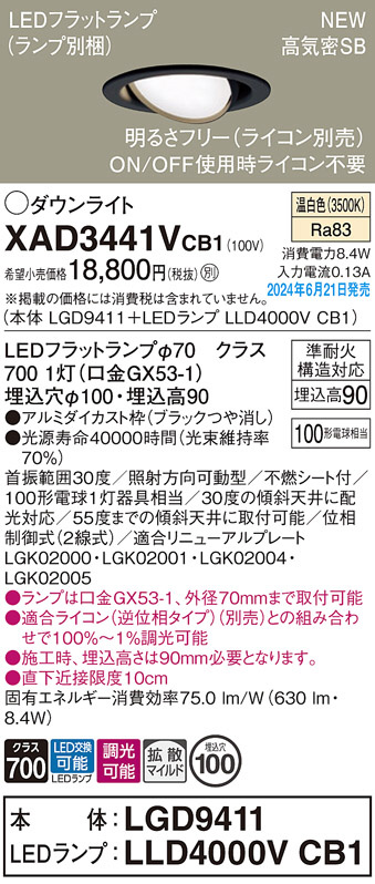 Panasonic ダウンライト XAD3441VCB1