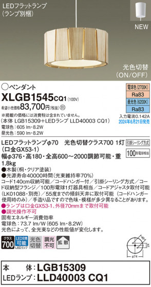 Panasonic ペンダントライト XLGB1545CQ1