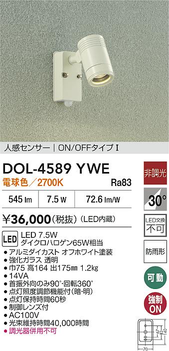 DAIKO 大光電機 人感センサー付アウトドアスポット DOL-4589YWE