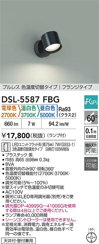DAIKO 大光電機 色温度切替スポットライト DSL-5587FBG