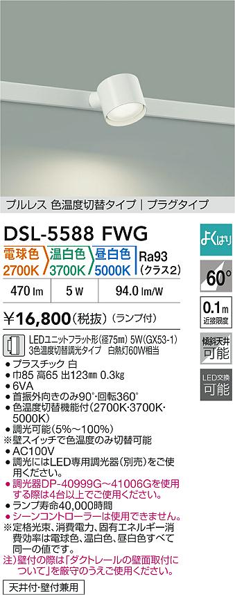 DAIKO 大光電機 色温度切替スポットライト DSL-5588FWG