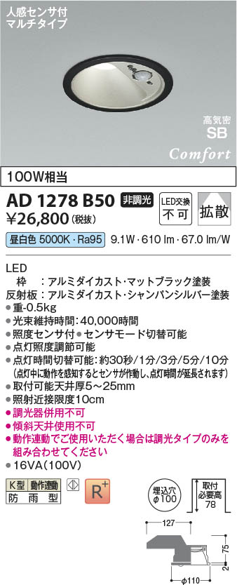 Koizumi コイズミ照明 LED高気密SBダウンライト AD1278B50