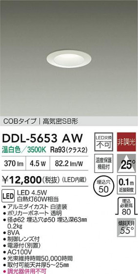 DAIKO 大光電機 LEDダウンライト DDL-5653AW